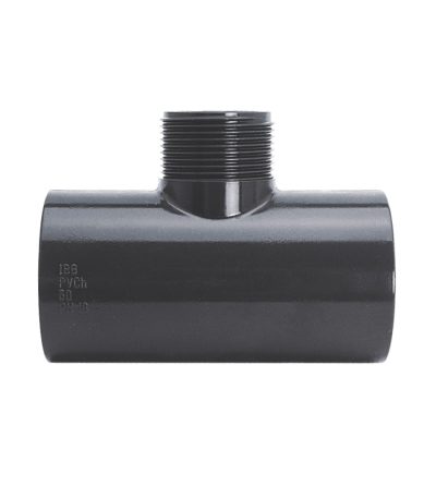IBG® Tee 90° solvent socket / pipe male thread, PN10, grey